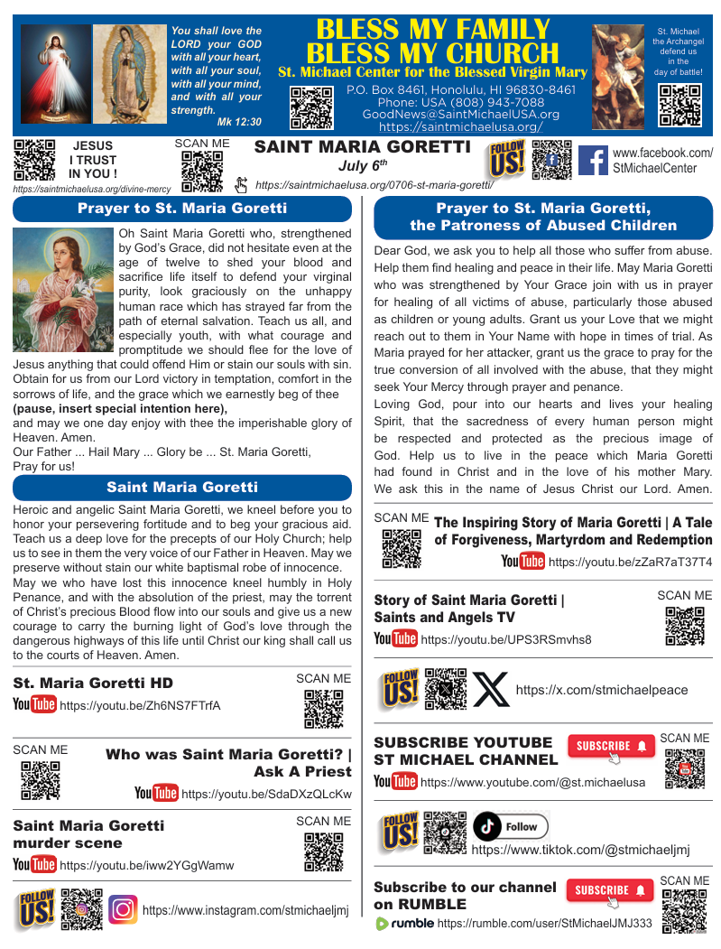 O St. Maria Goretti, patron of youth, please pray for the children in my life and the youth across the world. Please pray that their faith may be as strong as yours was when you were 11 years old.