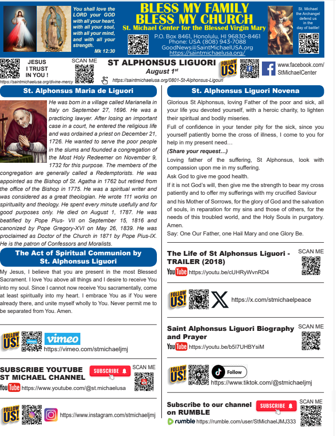 The Act of Spiritual Communion by St. Alphonsus Liguori