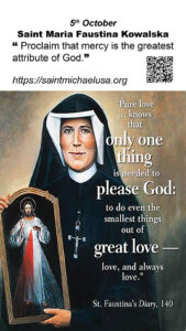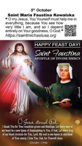 Saint Faustina, obtain for me the grace of childlike trust so that I may always and in everything faithfully fulfill God’s will, which is mercy itself for us.