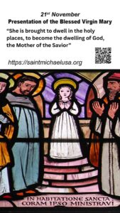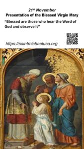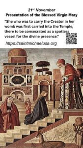 This Novena begins November 13th and ends November 21st, the Feast of Presentation of the Blessed virgin Mary.