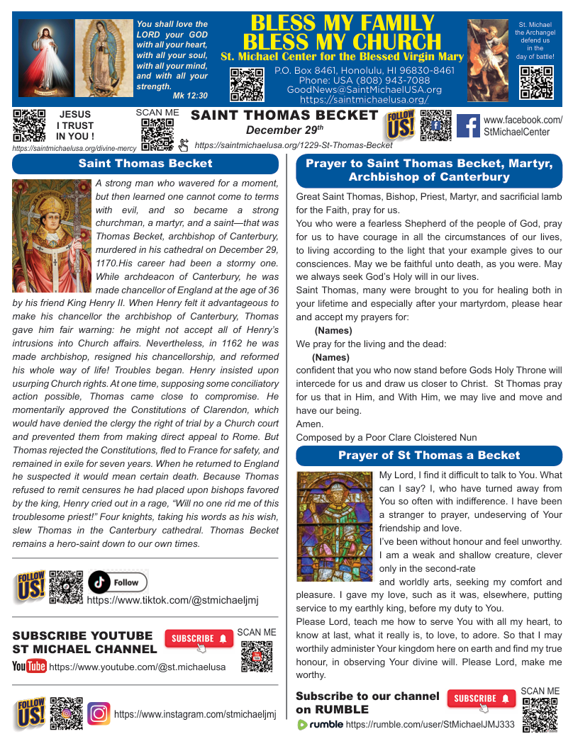 May the prayers of St Thomas Becket give us the courage to proclaim our faith by the witness of our lives.