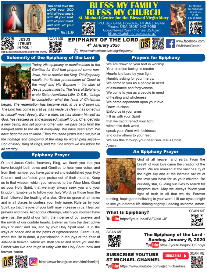 Today, His epiphany or manifestation to the Gentiles for God had prepared some non-Jews, too, to receive the King. The Epiphany recalls the limited presentation of Christ to the magi and His Baptism – the start of Jesus’ public ministry. The feast of Epiphany, wrote Sister Aemiliana Löhr, O.S.B., “brings to completion what the feast of Christmas began. The redemption has become real, in us and upon us. The Lord has come to visit us, has made us clean, has joined us to himself most deeply. Born a man, he has shown himself as God, has rescued us and espoused himself to us. Changed into a new being, and set upon another way, we pass back from the banquet table to the life of every-day. We have seen God. We have become his children.” Two thousand years later, we join in the homage and gift-giving of the Magi by worshiping Jesus—Son of Mary, King of kings, and the One whom we will adore for all eternity.
