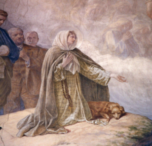According to tradition, a nobleman’s dog discovered Roch in the forest.