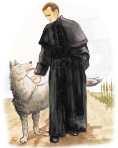St. John Bosco was mysteriously protected for many years by a large gray dog he called Grigio. The dog would appear when Don Bosco was in danger from attackers and would disappear afterward.