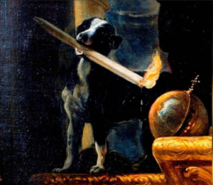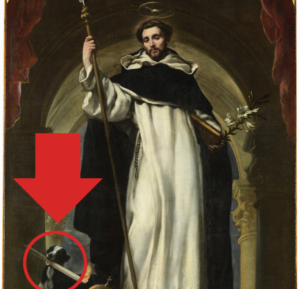 In art, a dog with a torch often appears beside St. Dominic, representing zeal for defending the faith.