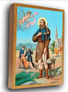 St. Roch was a 14th-century pilgrim who devoted his life to caring for victims of the plague. He prayed over the sick and many were miraculously healed.