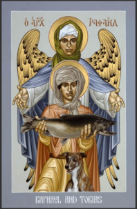 Because of this story, many Catholic artists include the dog when portraying Raphael and Tobias.