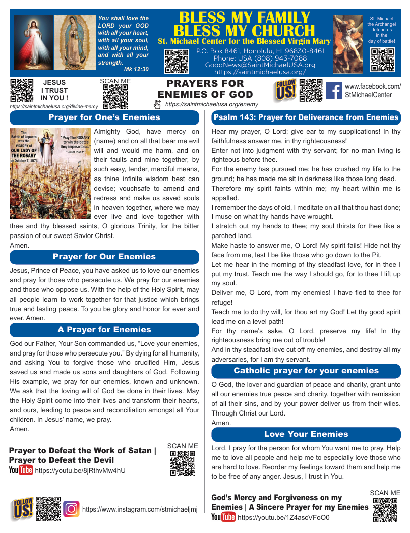 Catholic prayer for your enemies