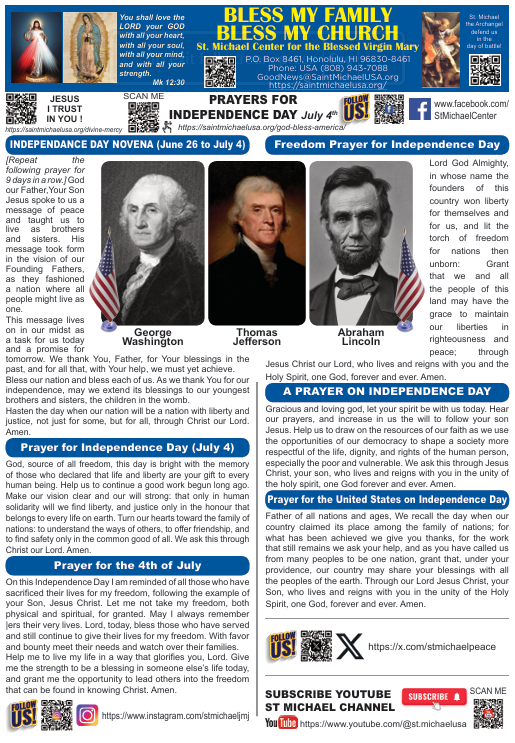 Catholic prayer for the United States on Independence Day