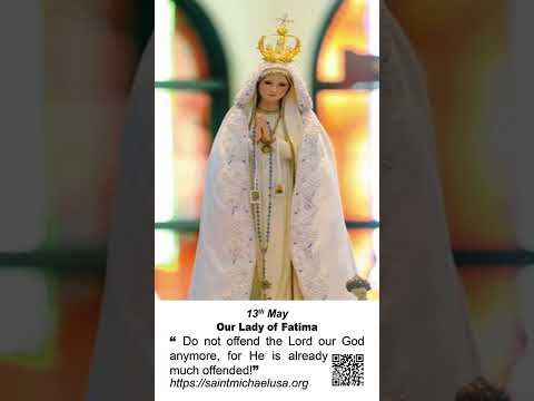 On May 13 is the anniversary of the apparition of Our Lady to three shepherd children in the small village of Fatima in Portugal in 1917. She appeared six times to Lucia, 9, and her cousins Francisco, 8, and his sister Jacinta, 6 between May 13 and October 13, 1917. Mary asked the children to pray the rosary for world peace, for the end of World War I, for sinners, and for the conversion of Russia.