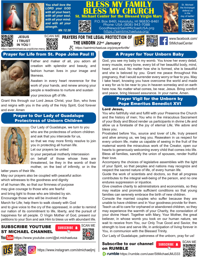 - Observance: Day of Prayer for the Legal Protection of Unborn Children